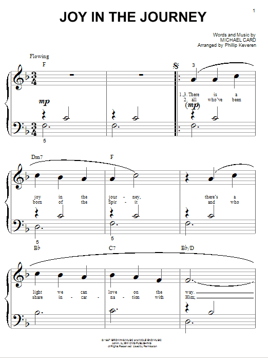 Download or print Michael Card Joy In The Journey (arr. Phillip Keveren) sheet music, chords and digital score arranged for Big Note Piano. This Christian score includes 4 page(s).