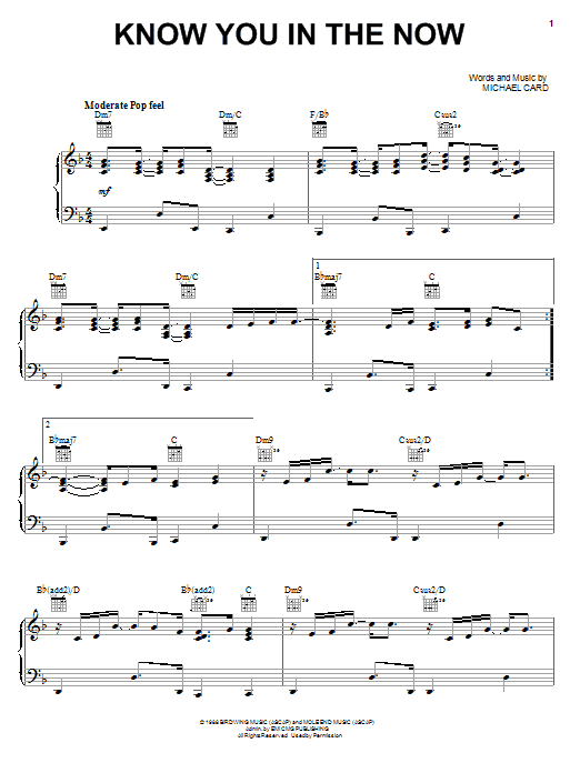 Download or print Michael Card Know You In The Now sheet music, chords and digital score arranged for Piano, Vocal & Guitar Chords (Right-Hand Melody). This Christian score includes 8 page(s).
