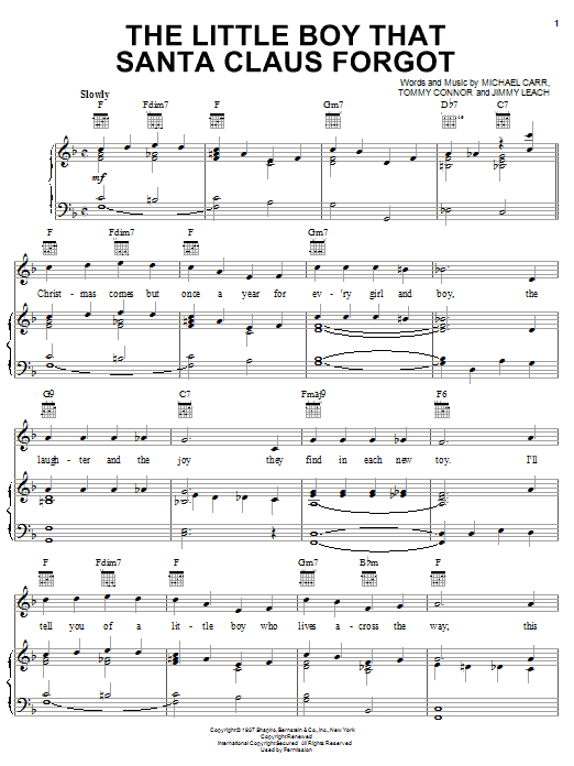 Download or print Michael Carr The Little Boy That Santa Claus Forgot sheet music, chords and digital score arranged for Piano, Vocal & Guitar Chords (Right-Hand Melody). This Christmas score includes 4 page(s).