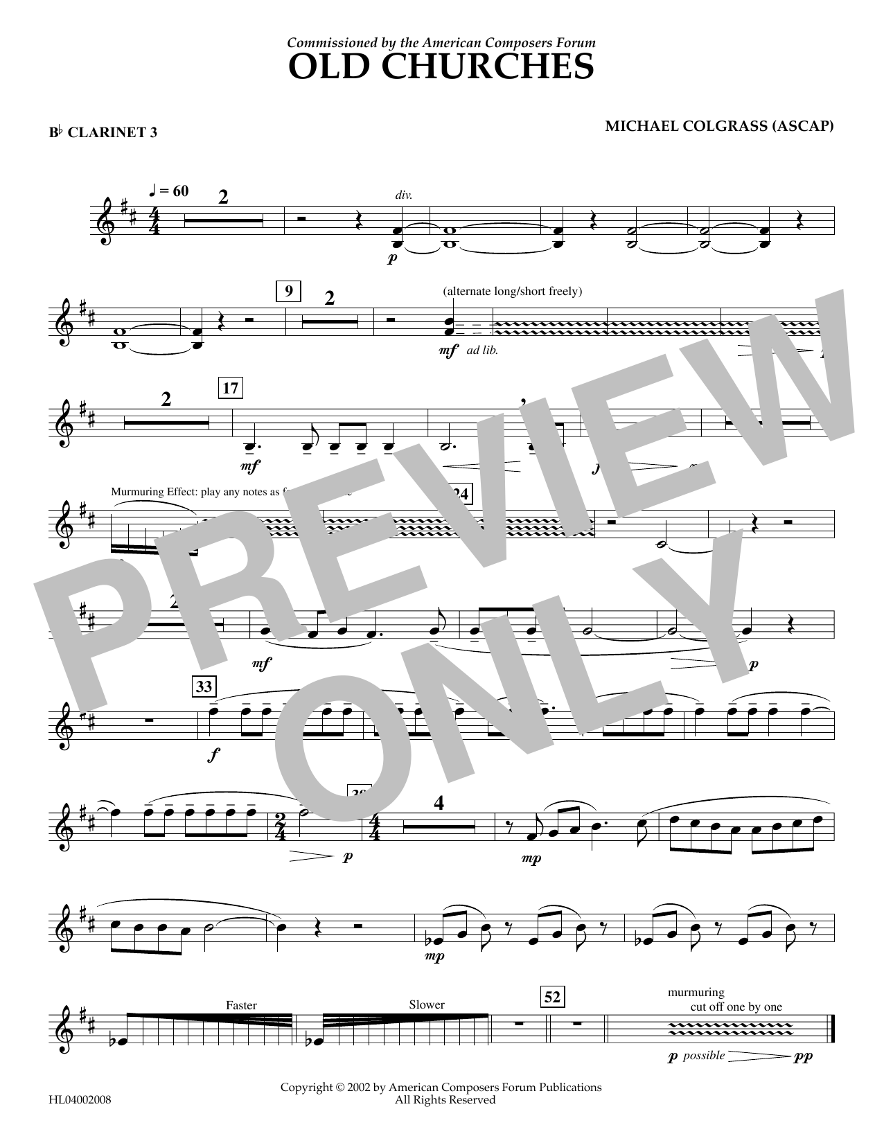 Download or print Michael Colgrass Old Churches - Bb Clarinet 3 sheet music, chords and digital score arranged for Concert Band. This Concert score includes 1 page(s).