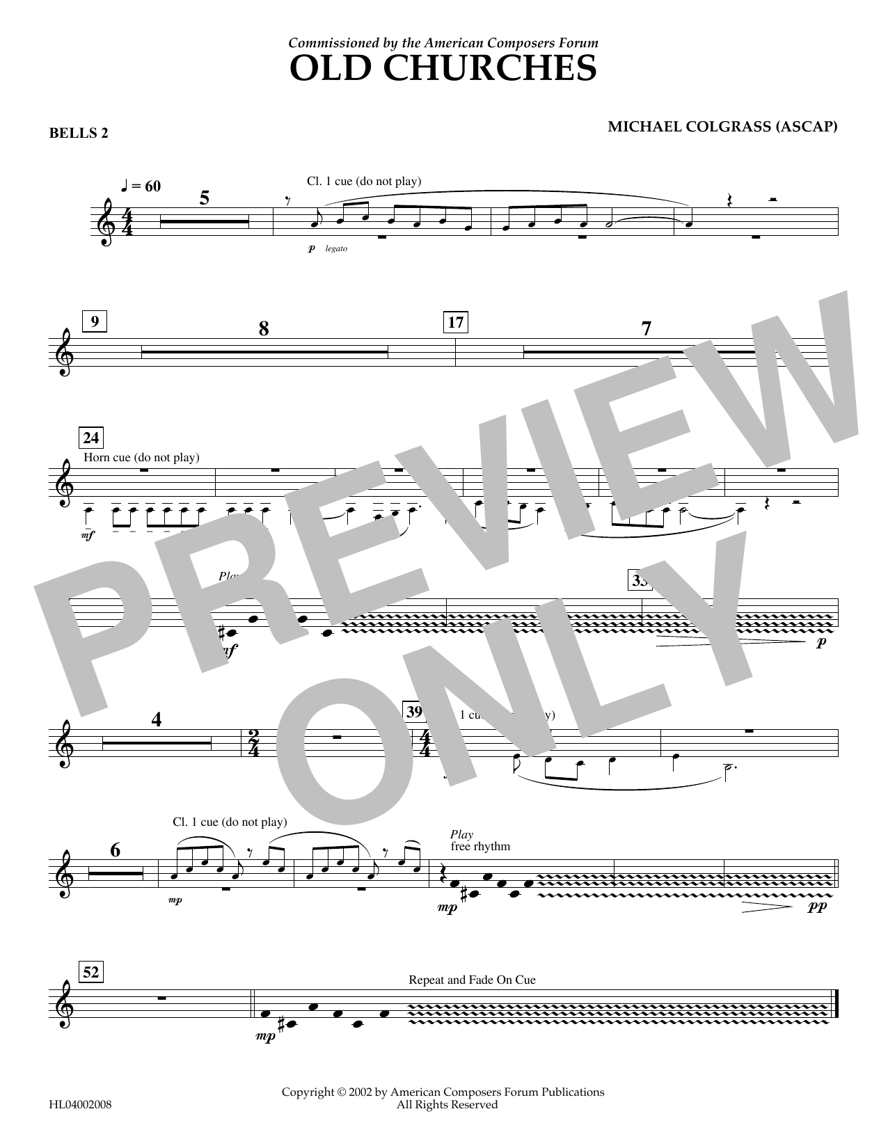 Download or print Michael Colgrass Old Churches - Bells Part 2 sheet music, chords and digital score arranged for Concert Band. This Concert score includes 1 page(s).