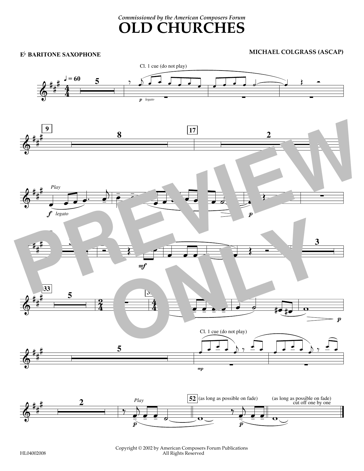 Download or print Michael Colgrass Old Churches - Eb Baritone Saxophone sheet music, chords and digital score arranged for Concert Band. This Concert score includes 1 page(s).
