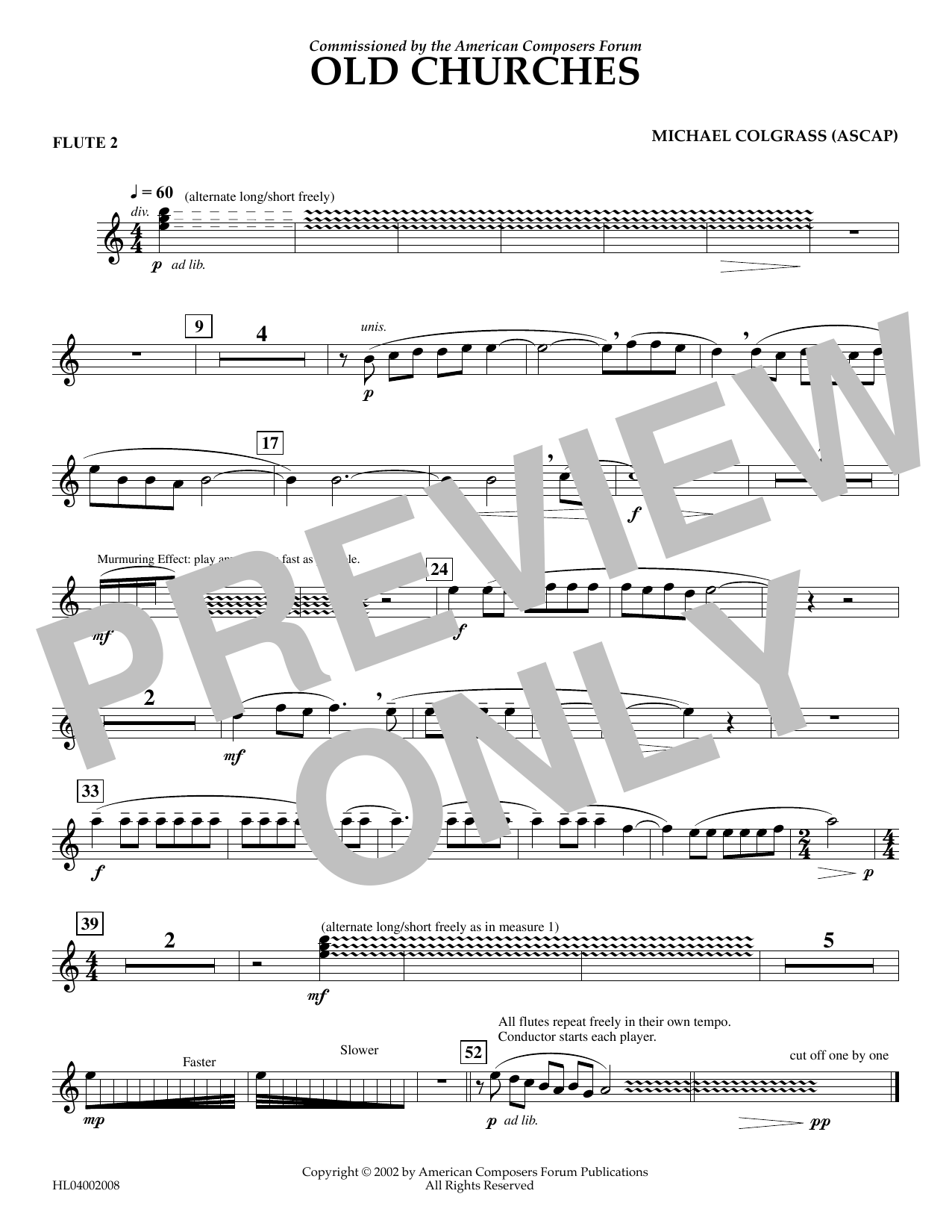Download or print Michael Colgrass Old Churches - Flute 2 sheet music, chords and digital score arranged for Concert Band. This Concert score includes 1 page(s).