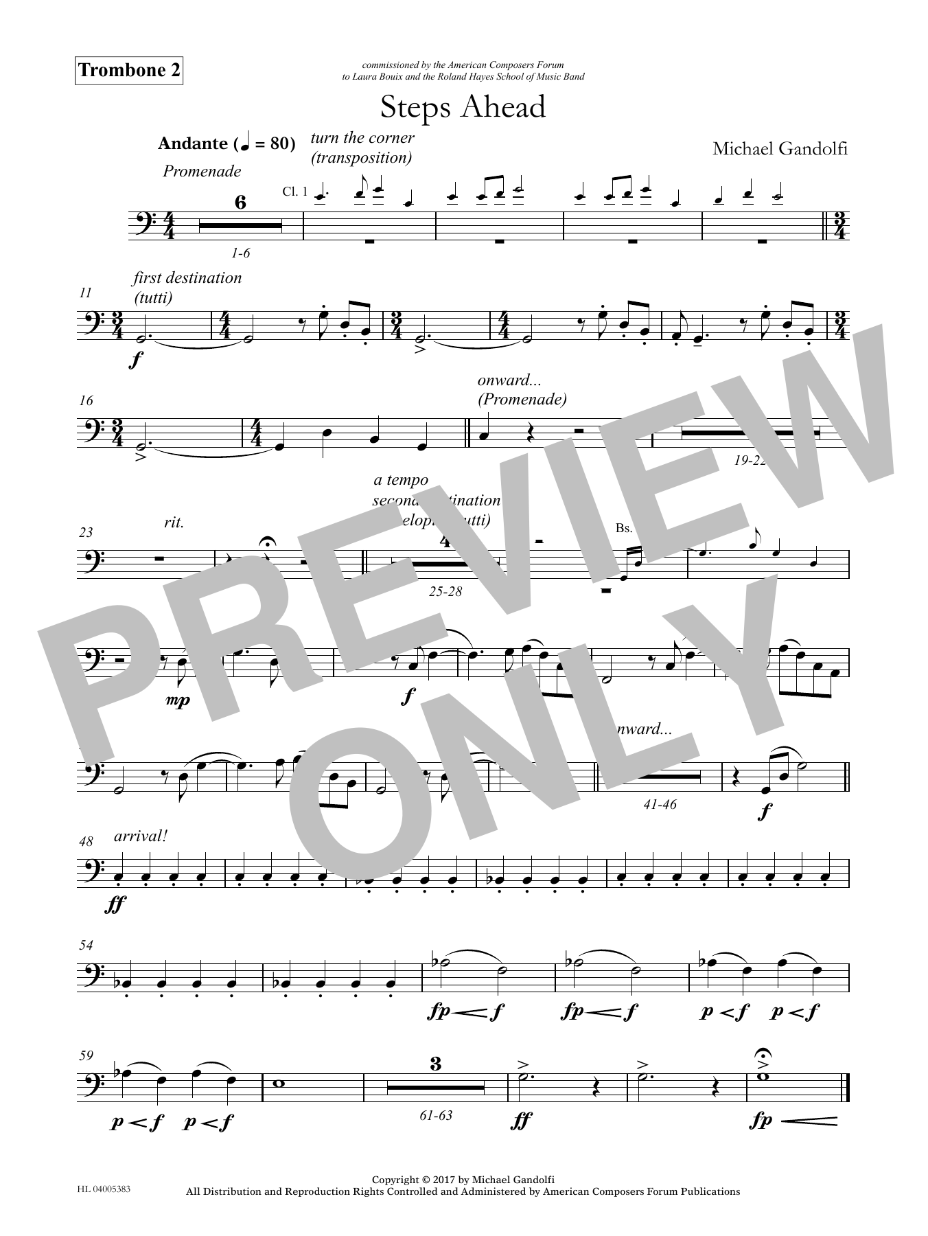 Download or print Michael Gandolfi Steps Ahead - Trombone 2 sheet music, chords and digital score arranged for Concert Band. This Concert score includes 1 page(s).