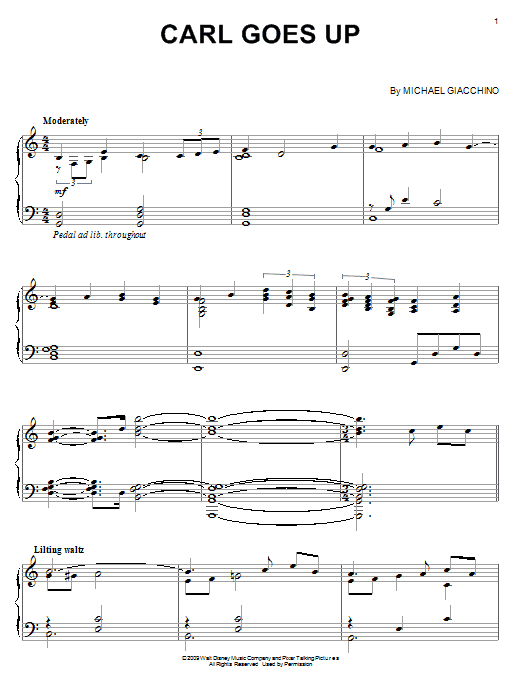 Download or print Michael Giacchino Carl Goes Up sheet music, chords and digital score arranged for Easy Piano. This Children score includes 6 page(s).