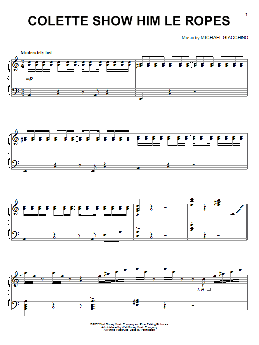 Download or print Michael Giacchino Colette Shows Him Le Ropes sheet music, chords and digital score arranged for Piano Solo. This Children score includes 7 page(s).