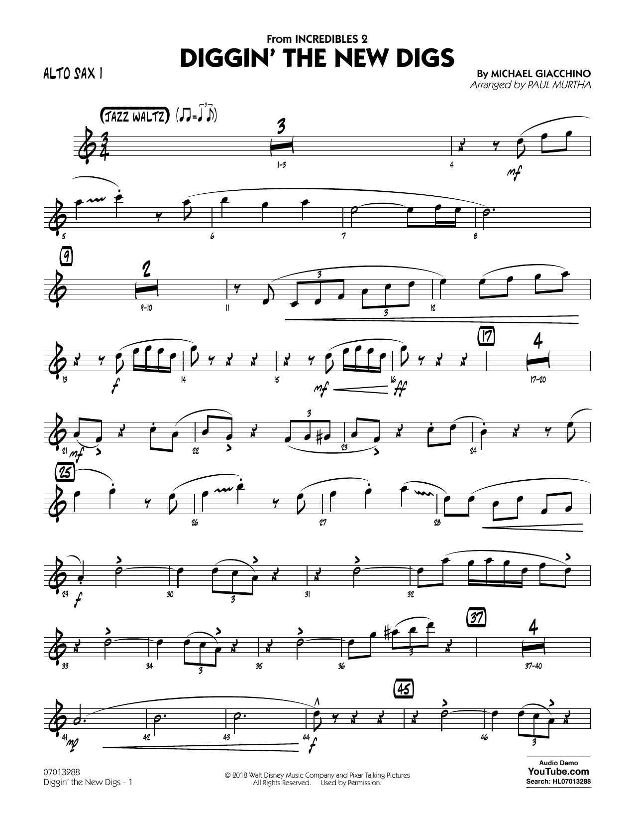 Quick facts Diggin' the New Digs (from Incredibles 2) (arr. Paul Murtha) - Alto Sax 1 about digital sheet music