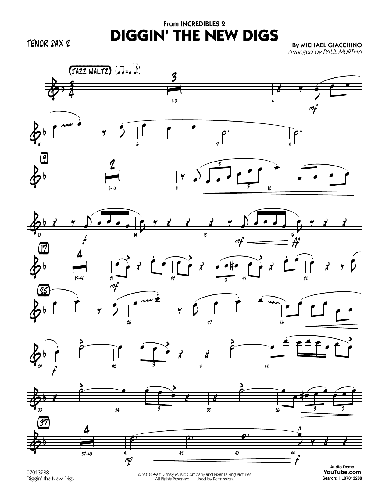 Quick facts Diggin' the New Digs (from Incredibles 2) (arr. Paul Murtha) - Tenor Sax 2 about digital sheet music