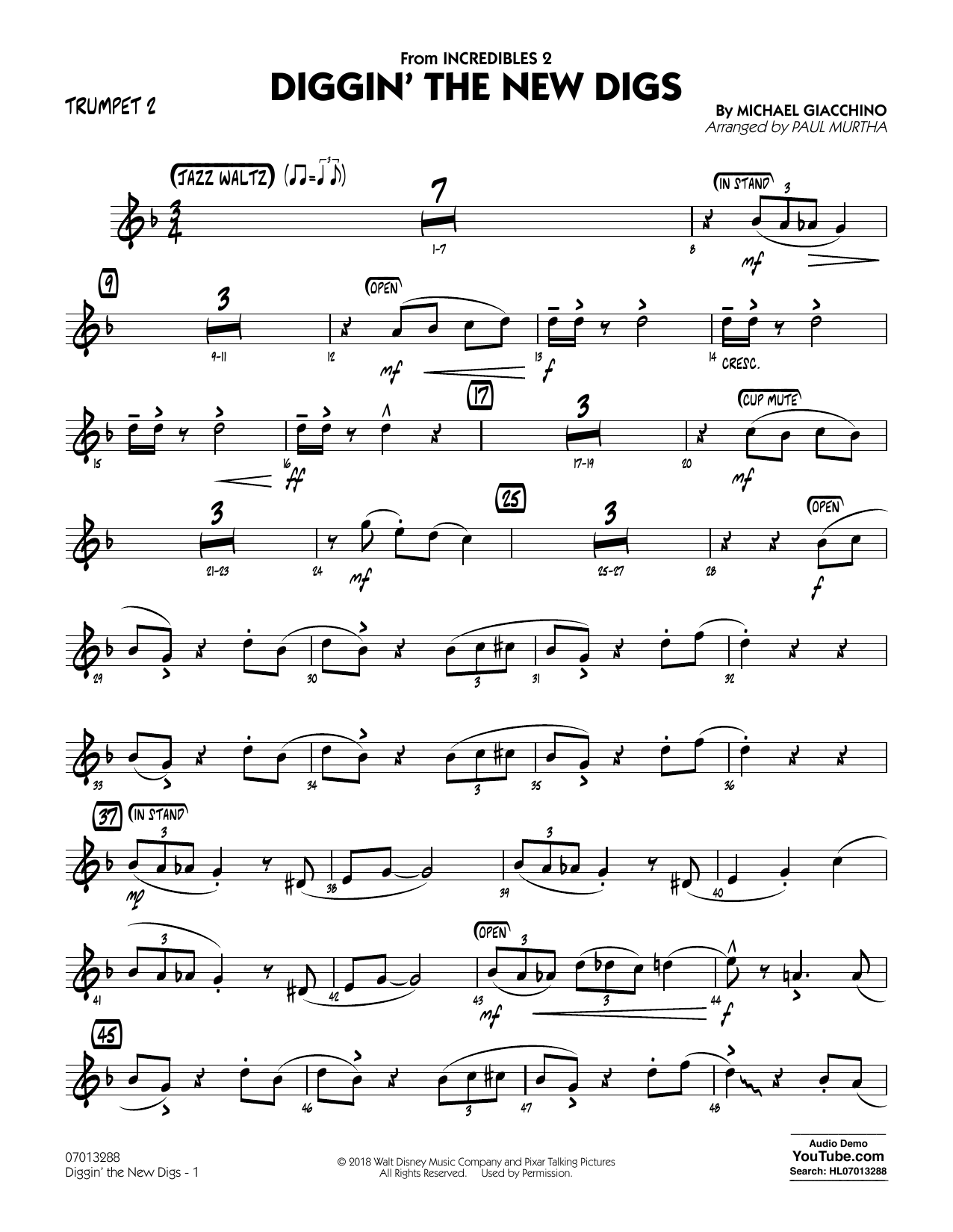 Quick facts Diggin' the New Digs (from Incredibles 2) (arr. Paul Murtha) - Trumpet 2 about digital sheet music