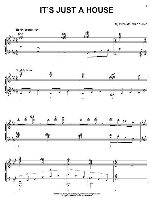 Download or print Michael Giacchino It's Just A House sheet music, chords and digital score arranged for Piano Solo. This Children score includes 3 page(s).