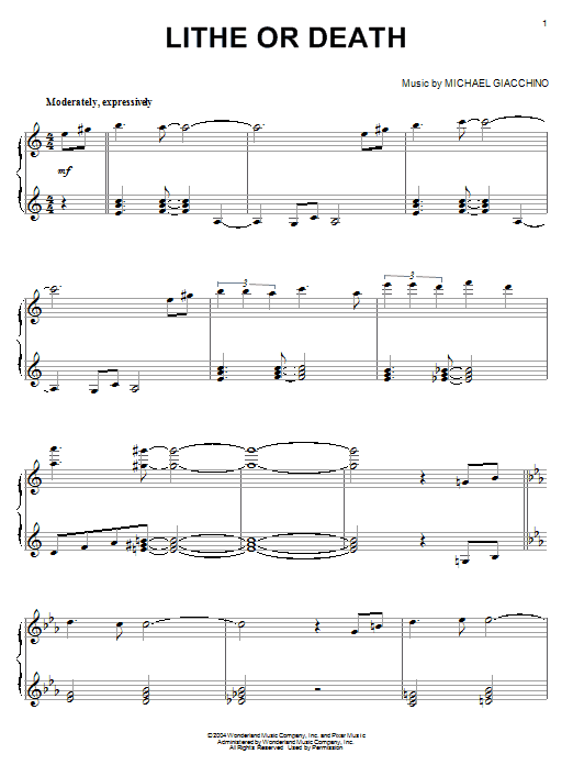 Download or print Michael Giacchino Lithe Or Death sheet music, chords and digital score arranged for Piano Solo. This Children score includes 3 page(s).