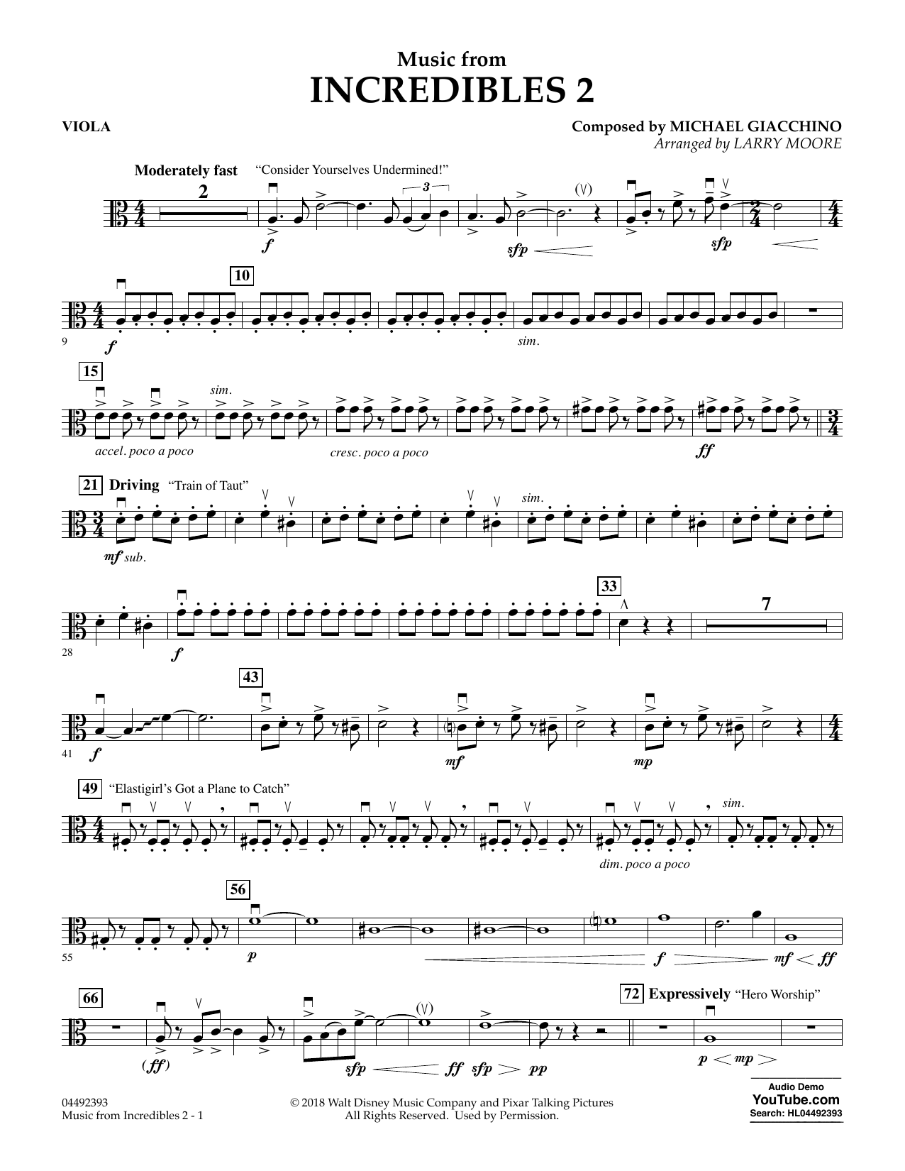 Quick facts Music from Incredibles 2 (arr. Larry Moore) - Viola about digital sheet music