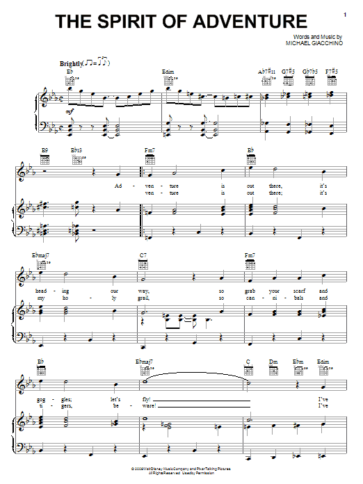 Download or print Michael Giacchino The Spirit Of Adventure sheet music, chords and digital score arranged for Easy Piano. This Children score includes 6 page(s).