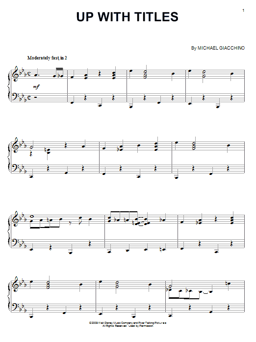 Download or print Michael Giacchino Up With Titles sheet music, chords and digital score arranged for Piano Solo. This Children score includes 3 page(s).