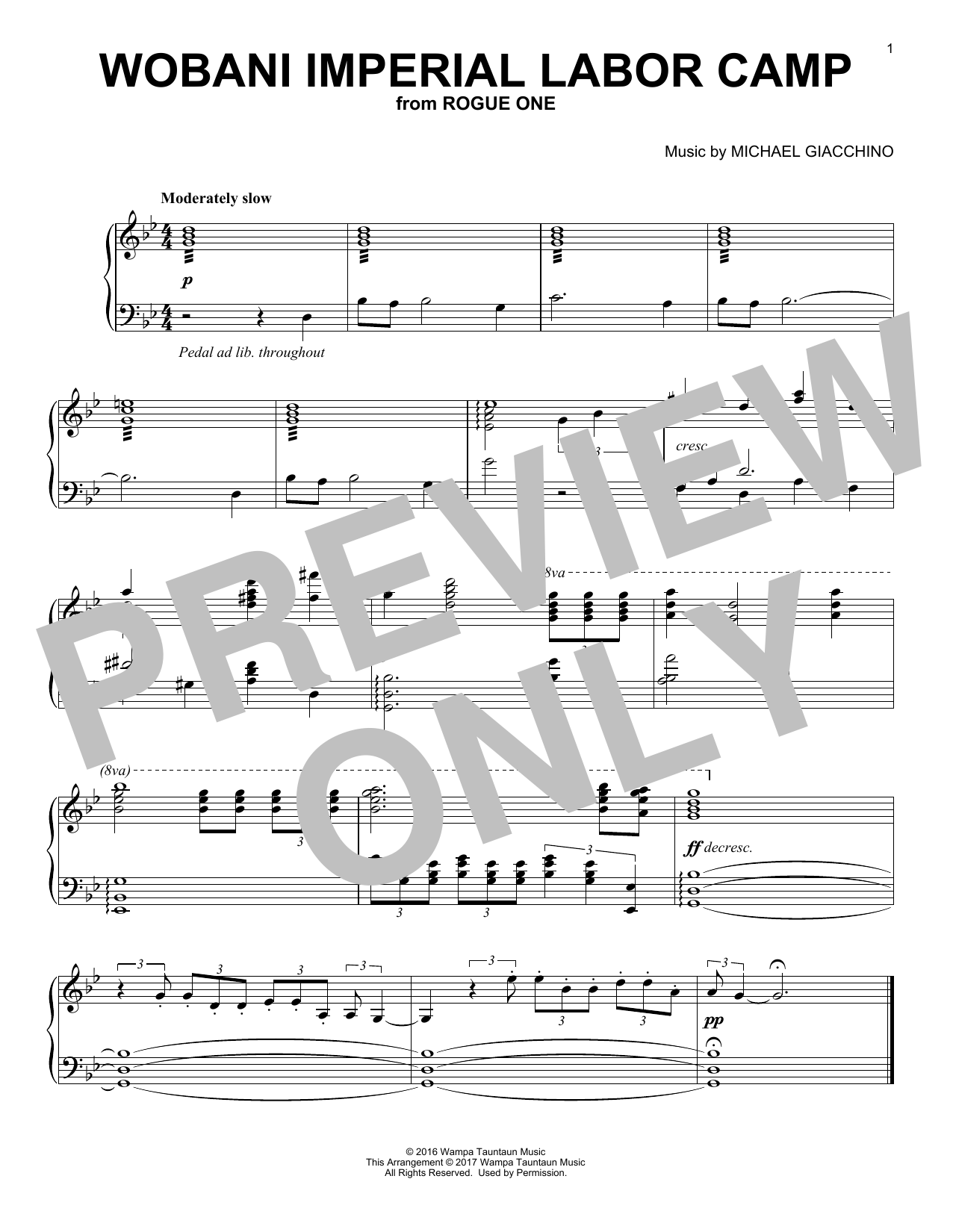 Download or print Michael Giacchino Wobani Imperial Labor Camp sheet music, chords and digital score arranged for Piano Solo. This Classical score includes 1 page(s).