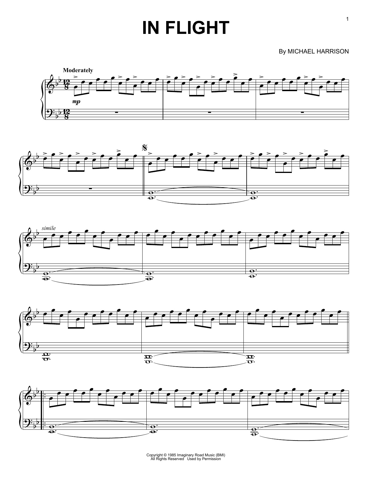 Download or print Michael Harrison In Flight sheet music, chords and digital score arranged for Easy Piano. This Classical score includes 3 page(s).