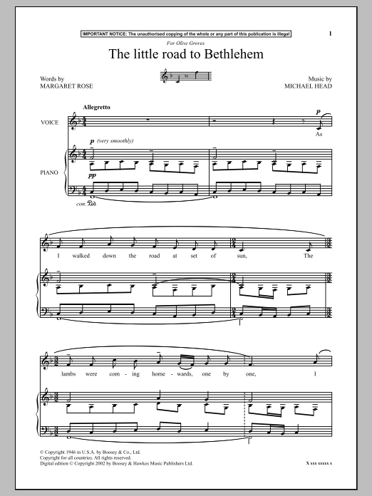 Download or print Michael Head The Little Road To Bethlehem sheet music, chords and digital score arranged for Piano & Vocal. This Classical score includes 5 page(s).