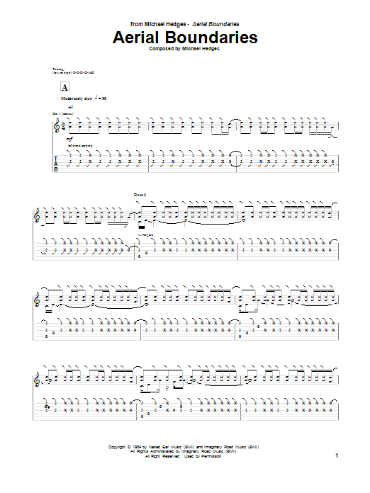 Download or print Michael Hedges Aerial Boundaries sheet music, chords and digital score arranged for Guitar Tab. This Pop score includes 9 page(s).