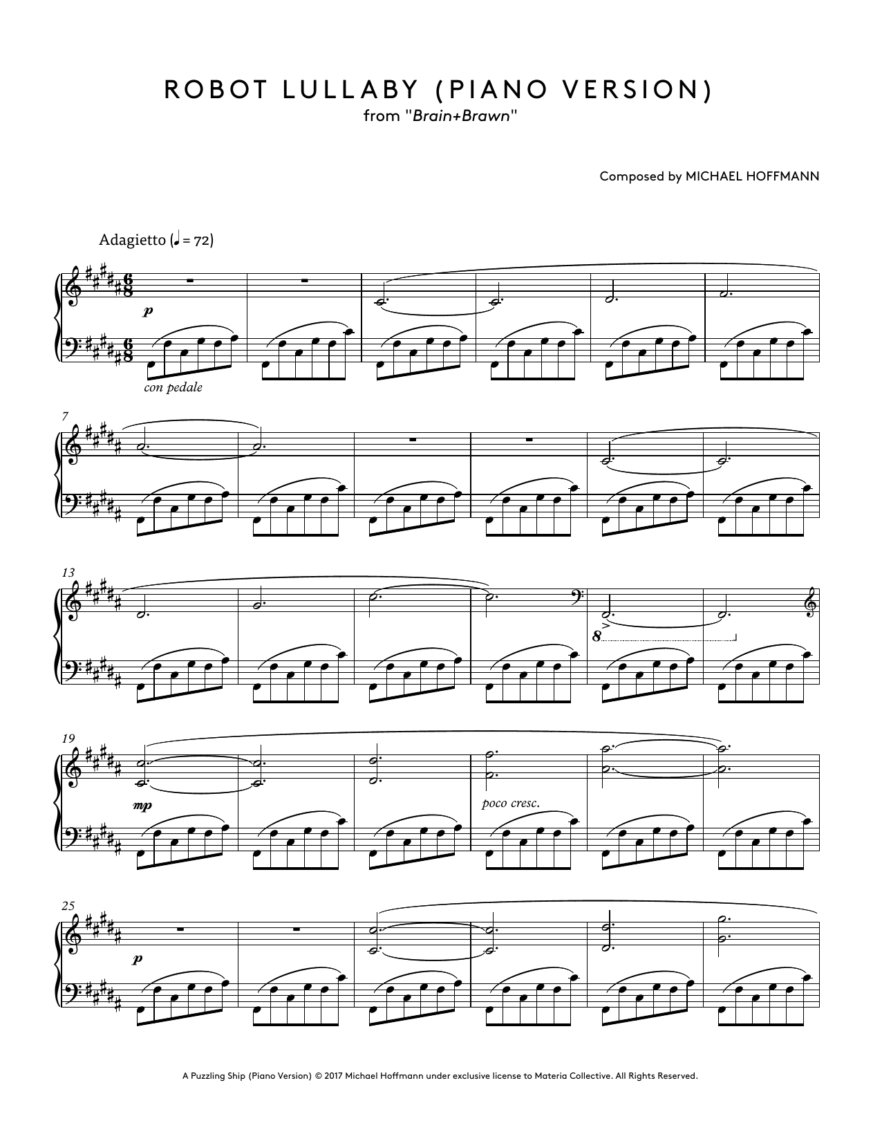 Download or print Michael Hoffmann Robot Lullaby sheet music, chords and digital score arranged for Piano Solo. This Video Game score includes 3 page(s).