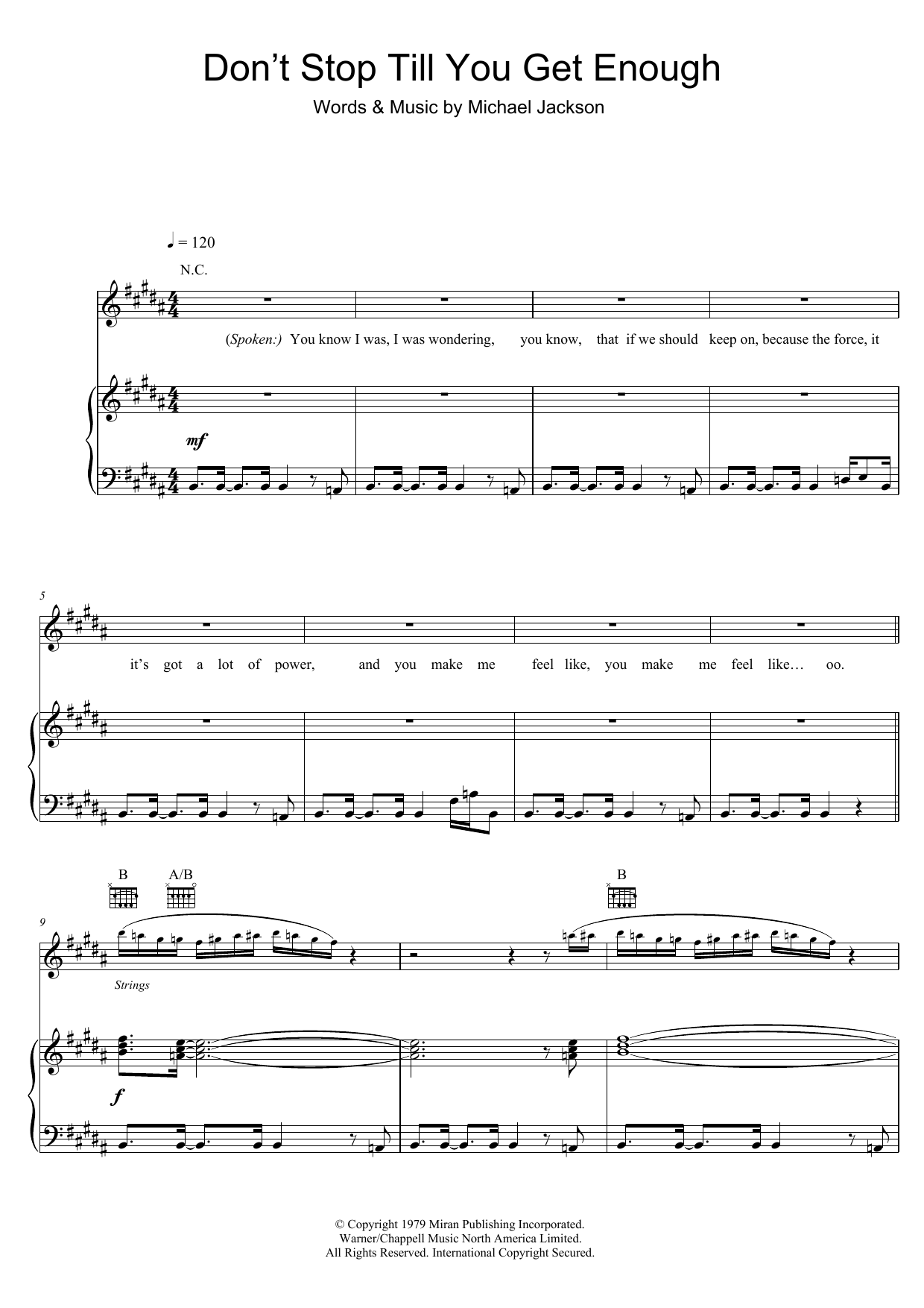 Download or print Michael Jackson Don't Stop Till You Get Enough sheet music, chords and digital score arranged for Easy Piano. This Pop score includes 5 page(s).