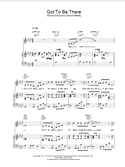 Download or print Michael Jackson Got To Be There sheet music, chords and digital score arranged for Piano, Vocal & Guitar Chords (Right-Hand Melody). This Pop score includes 4 page(s).