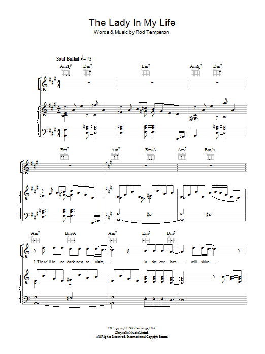 Download or print Michael Jackson The Lady In My Life sheet music, chords and digital score arranged for Piano Solo. This Pop score includes 2 page(s).