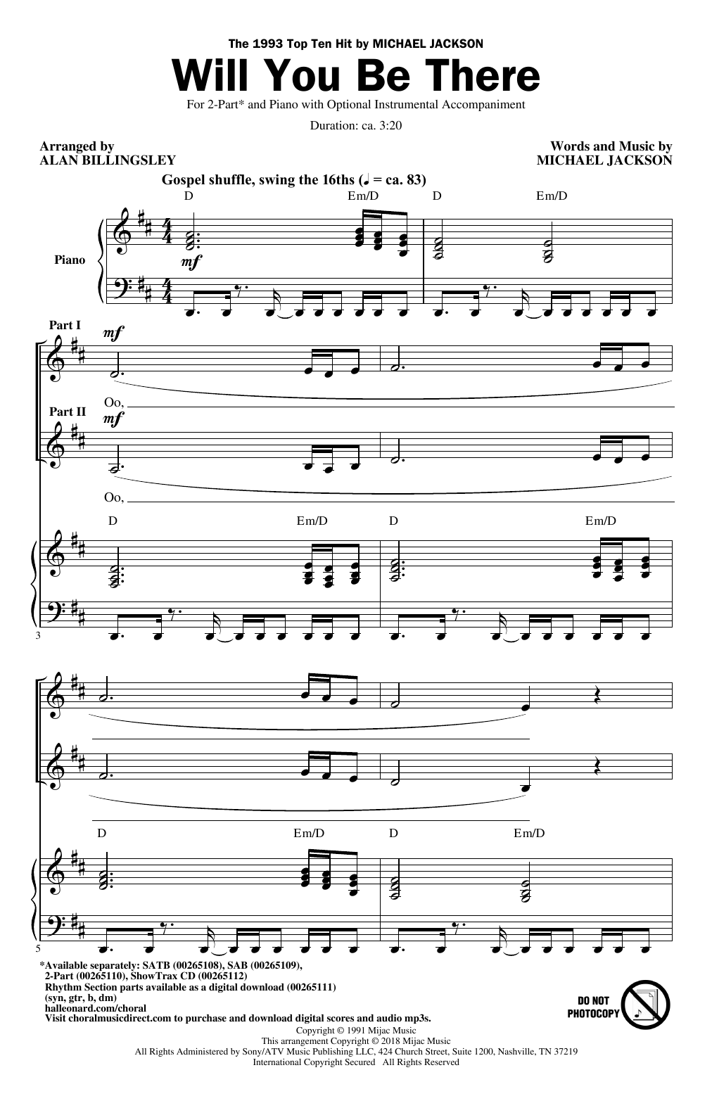 Download or print Michael Jackson Will You Be There (arr. Alan Billingsley) sheet music, chords and digital score arranged for SAB Choir. This Pop score includes 14 page(s).