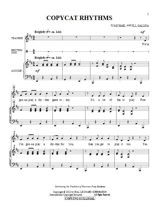 Download or print Jill Gallina Copy Cat Rhythms sheet music, chords and digital score arranged for Choir. This Concert score includes 7 page(s).