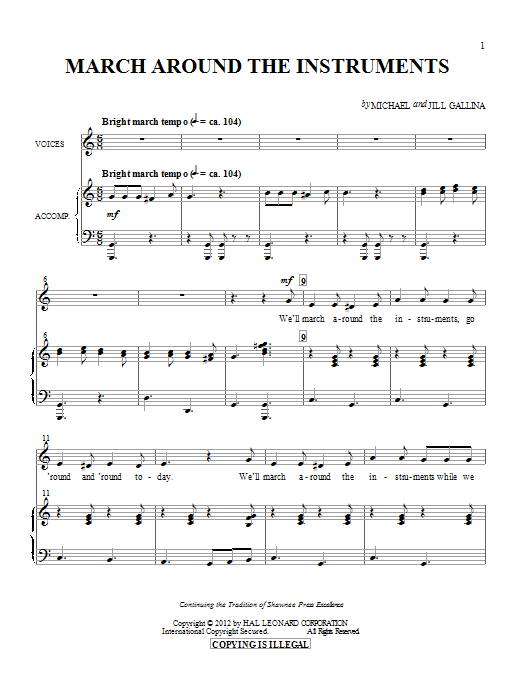 Download or print Jill Gallina March Around The Instruments sheet music, chords and digital score arranged for Choir. This Concert score includes 5 page(s).