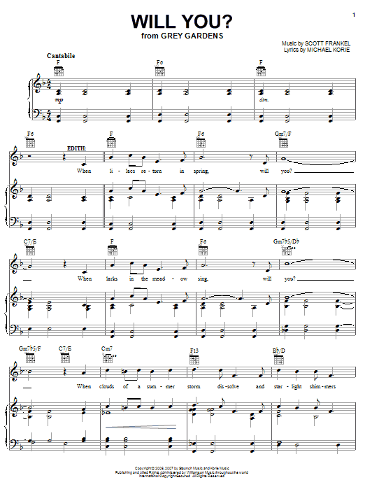 Download or print Michael Korie Will You? sheet music, chords and digital score arranged for Piano & Vocal. This Musical/Show score includes 5 page(s).