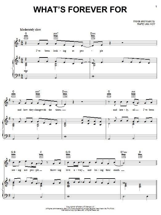 Download or print Michael Martin Murphey What's Forever For sheet music, chords and digital score arranged for Super Easy Piano. This Country score includes 2 page(s).