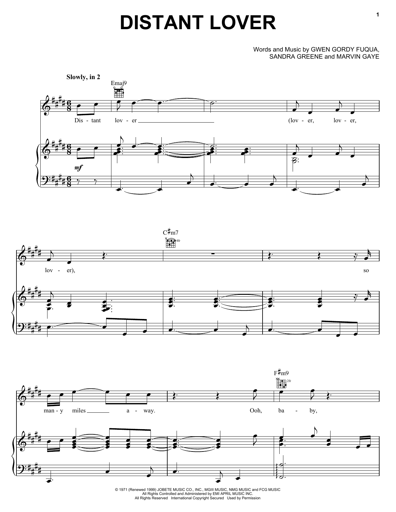Download or print Michael McDonald Distant Lover sheet music, chords and digital score arranged for Piano, Vocal & Guitar Chords (Right-Hand Melody). This Pop score includes 9 page(s).