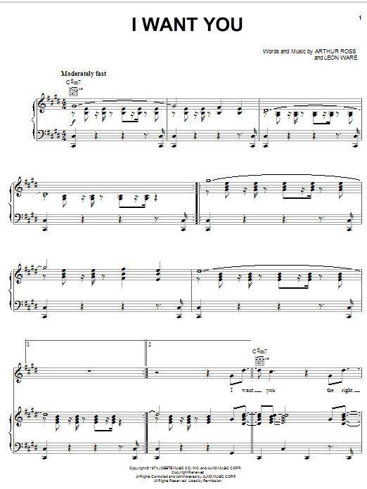 Download or print Michael McDonald I Want You sheet music, chords and digital score arranged for Piano, Vocal & Guitar Chords (Right-Hand Melody). This Pop score includes 8 page(s).