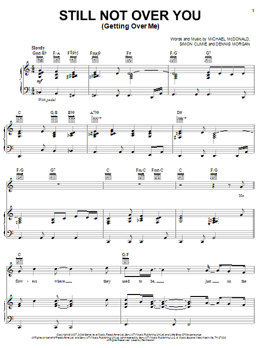 Download or print Michael McDonald Still Not Over You (Getting Over Me) sheet music, chords and digital score arranged for Piano, Vocal & Guitar Chords (Right-Hand Melody). This Pop score includes 8 page(s).