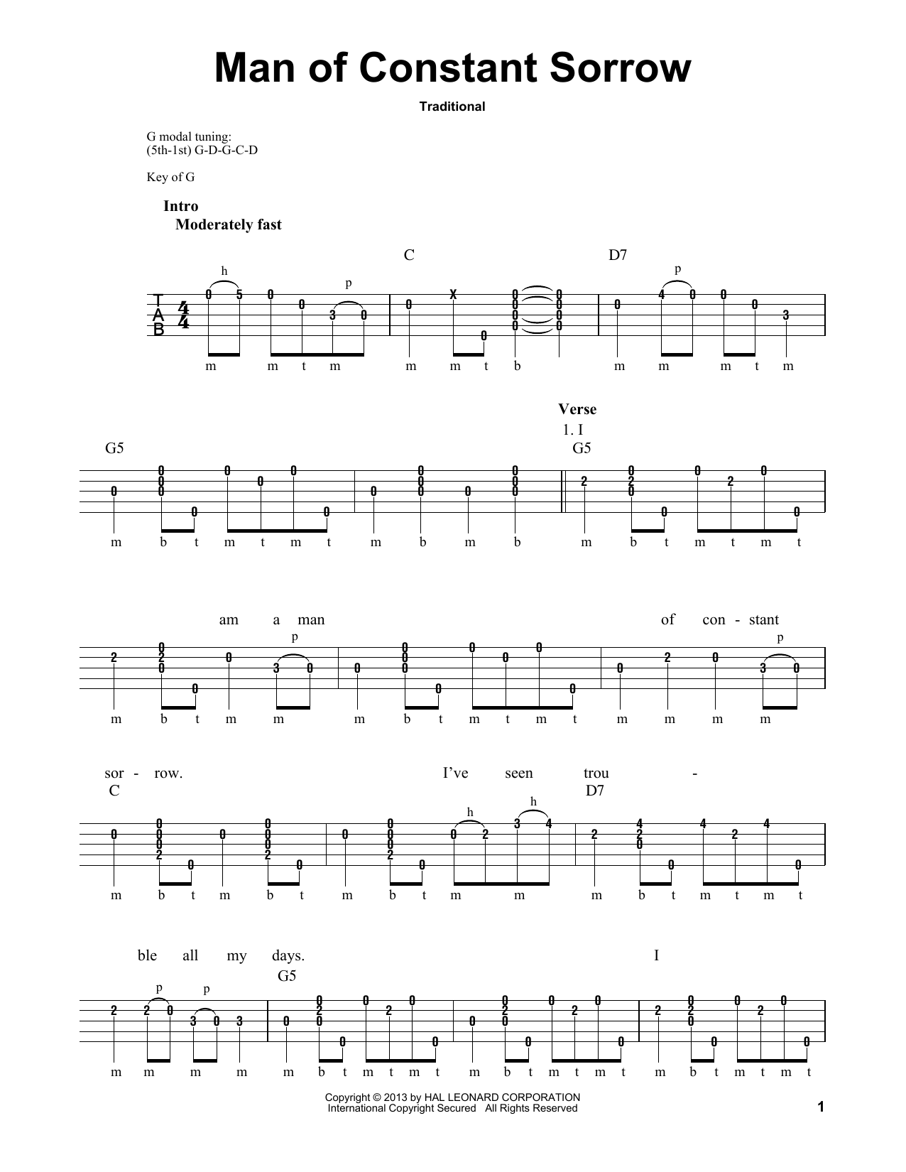 Download or print Michael Miles Man Of Constant Sorrow sheet music, chords and digital score arranged for Banjo Tab. This Country score includes 2 page(s).