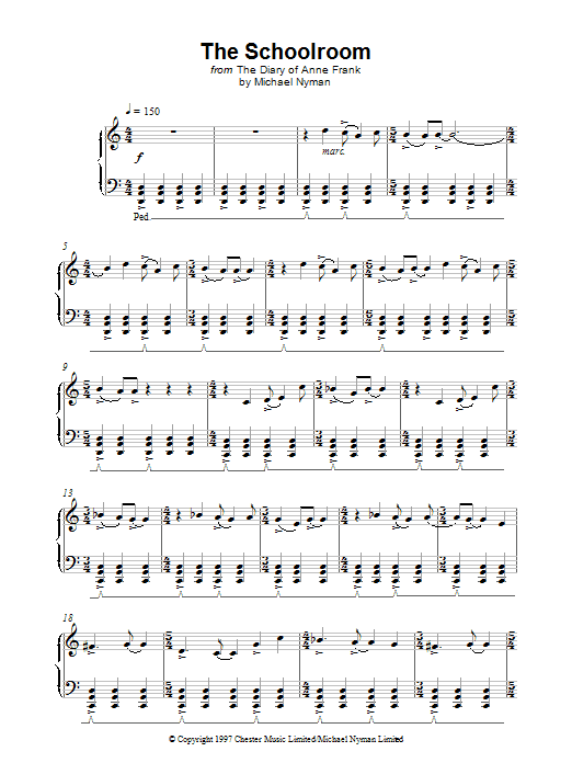 Download or print Michael Nyman The Schoolroom sheet music, chords and digital score arranged for Piano Solo. This Classical score includes 6 page(s).