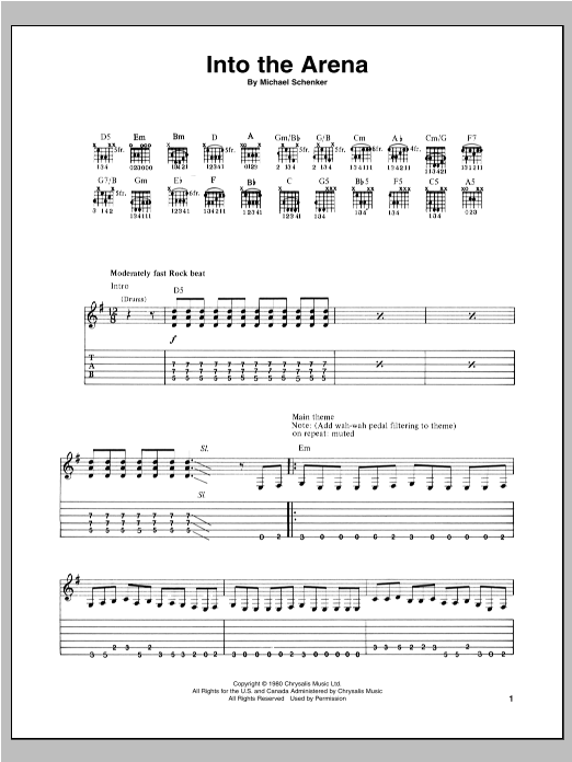 Download or print Michael Schenker Into The Arena sheet music, chords and digital score arranged for Guitar Tab. This Pop score includes 12 page(s).