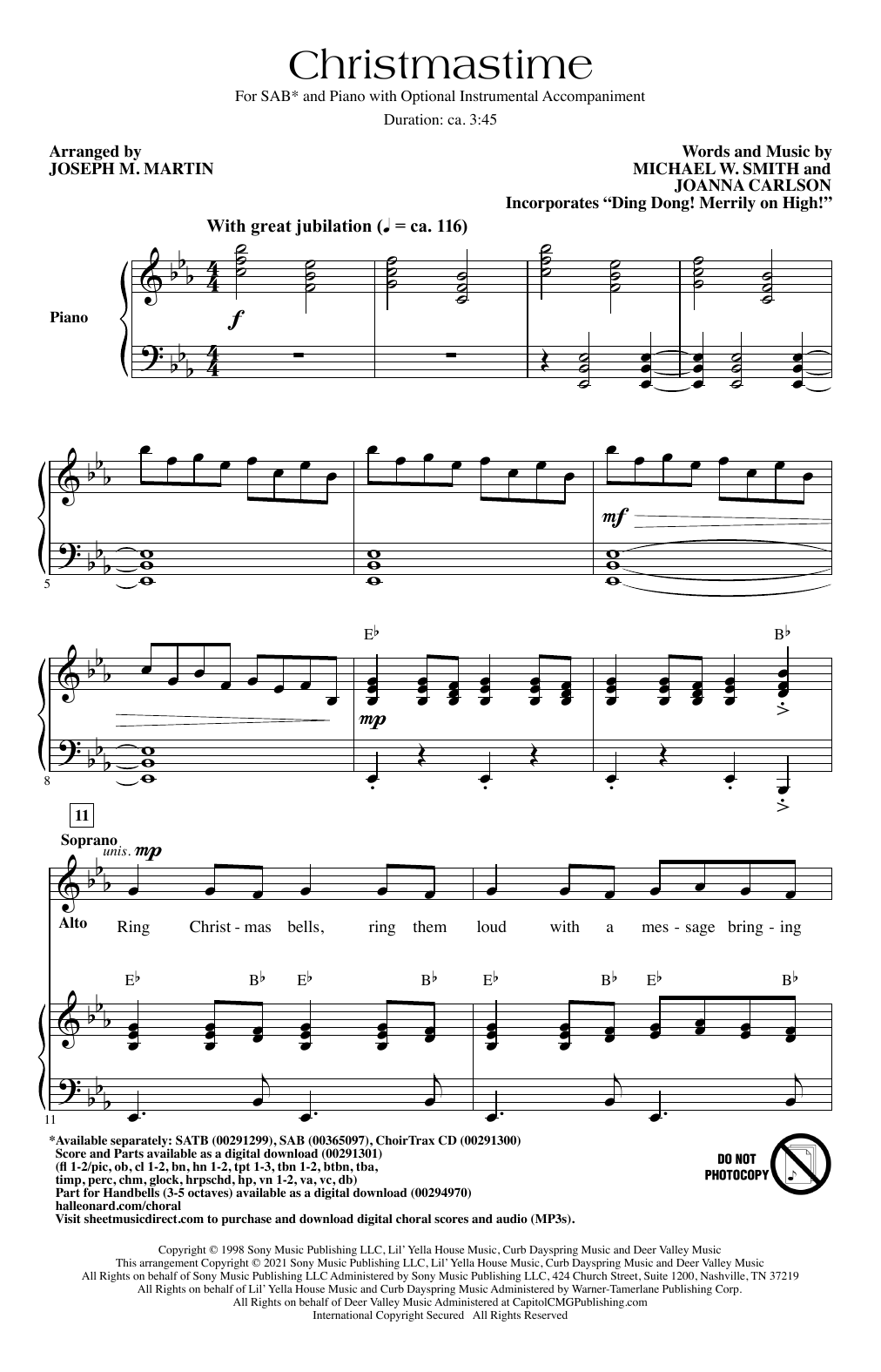Download or print Michael W. Smith Christmastime (arr. Joseph M. Martin) sheet music, chords and digital score arranged for SSA Choir. This Christmas score includes 14 page(s).
