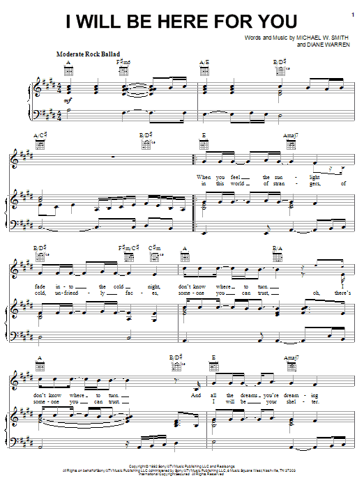 Download or print Michael W. Smith I Will Be Here For You sheet music, chords and digital score arranged for Piano, Vocal & Guitar Chords (Right-Hand Melody). This Christian score includes 6 page(s).