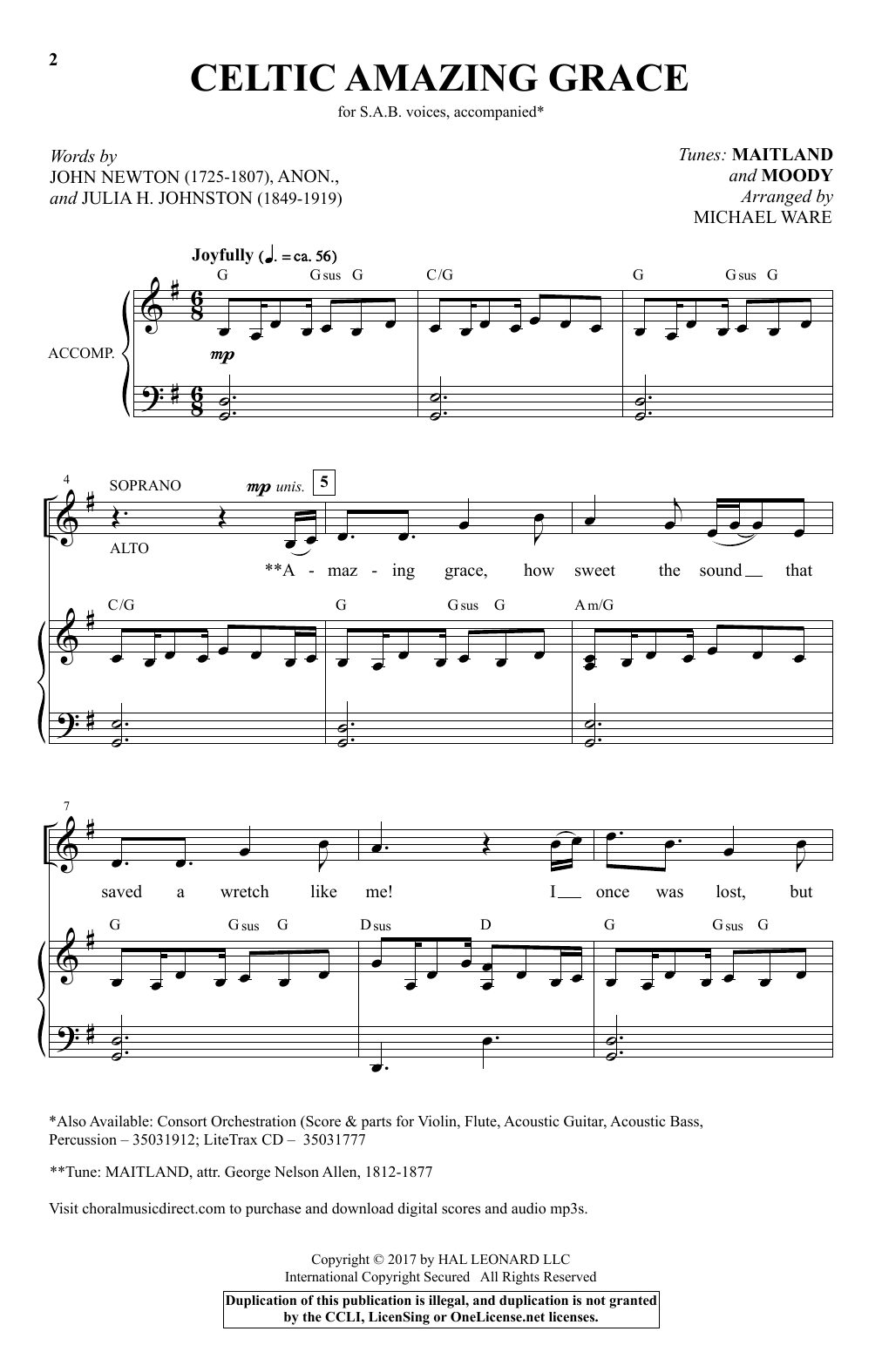 Download or print Michael Ware Celtic Amazing Grace sheet music, chords and digital score arranged for SAB Choir. This Celtic score includes 10 page(s).
