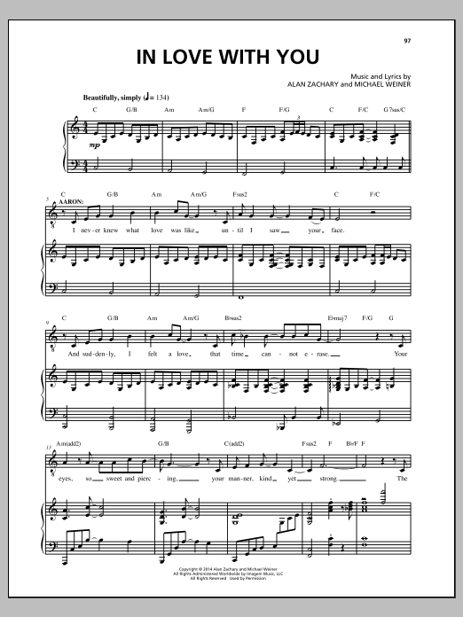 Download or print Michael Weiner In Love With You sheet music, chords and digital score arranged for Piano & Vocal. This Musical/Show score includes 11 page(s).