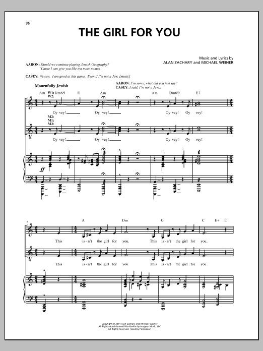 Download or print Michael Weiner The Girl For You sheet music, chords and digital score arranged for Piano & Vocal. This Musical/Show score includes 18 page(s).