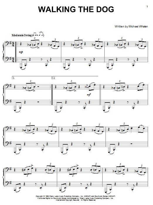 Download or print Michael Whalen Walking The Dog sheet music, chords and digital score arranged for Piano Solo. This Pop score includes 5 page(s).
