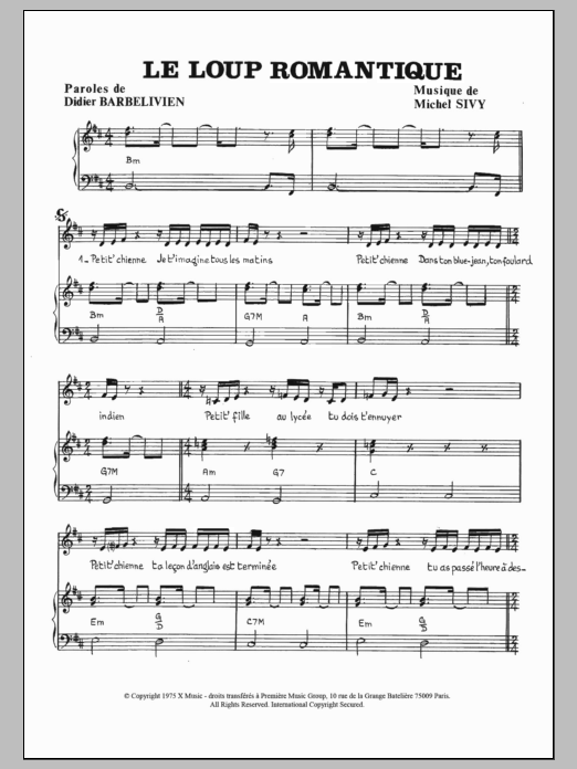 Download or print Michel Sivy Le Loup Romantique sheet music, chords and digital score arranged for Piano & Vocal. This French score includes 2 page(s).