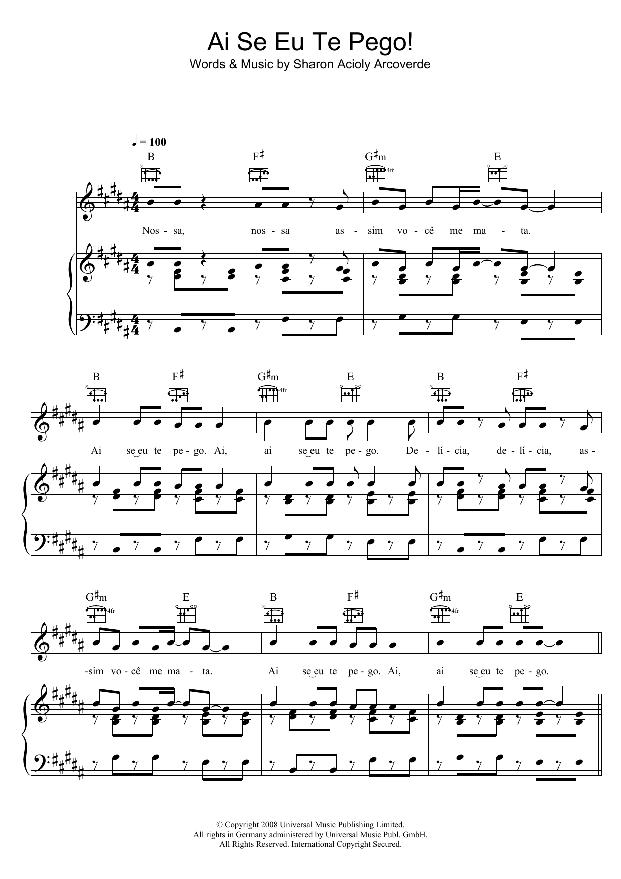 Download or print Michel Telo Ai Se Eu Te Pego sheet music, chords and digital score arranged for Piano, Vocal & Guitar Chords. This Latin score includes 4 page(s).