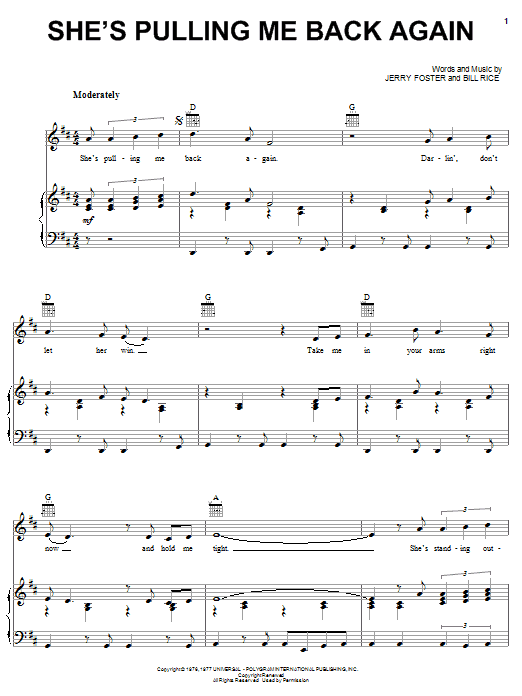 Download or print Mickey Gilley She's Pulling Me Back Again sheet music, chords and digital score arranged for Piano, Vocal & Guitar Chords (Right-Hand Melody). This Country score includes 3 page(s).