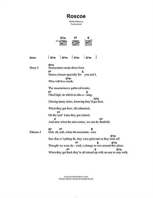Download or print Midlake Roscoe sheet music, chords and digital score arranged for Guitar Chords/Lyrics. This Rock score includes 3 page(s).