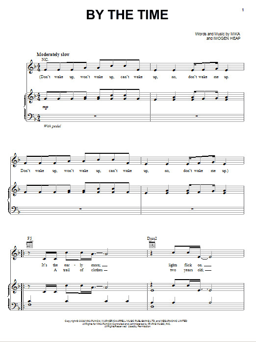 Download or print Mika By The Time sheet music, chords and digital score arranged for Piano, Vocal & Guitar Chords (Right-Hand Melody). This Pop score includes 6 page(s).