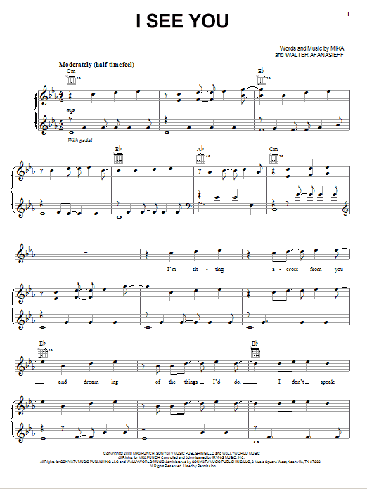 Download or print Mika I See You sheet music, chords and digital score arranged for Piano, Vocal & Guitar Chords (Right-Hand Melody). This Pop score includes 9 page(s).