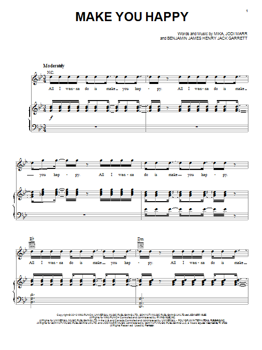 Download or print Mika Make You Happy sheet music, chords and digital score arranged for Piano, Vocal & Guitar Chords (Right-Hand Melody). This Pop score includes 10 page(s).